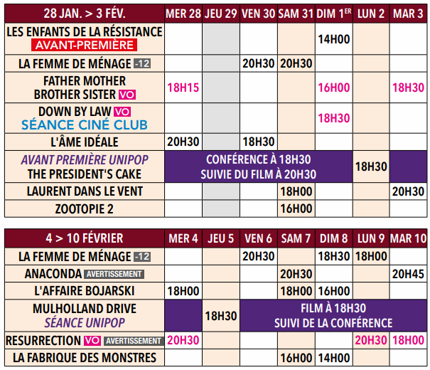 Retrouvez les programmes des cinémas, les horaires ainsi que le résumé des films projetés.