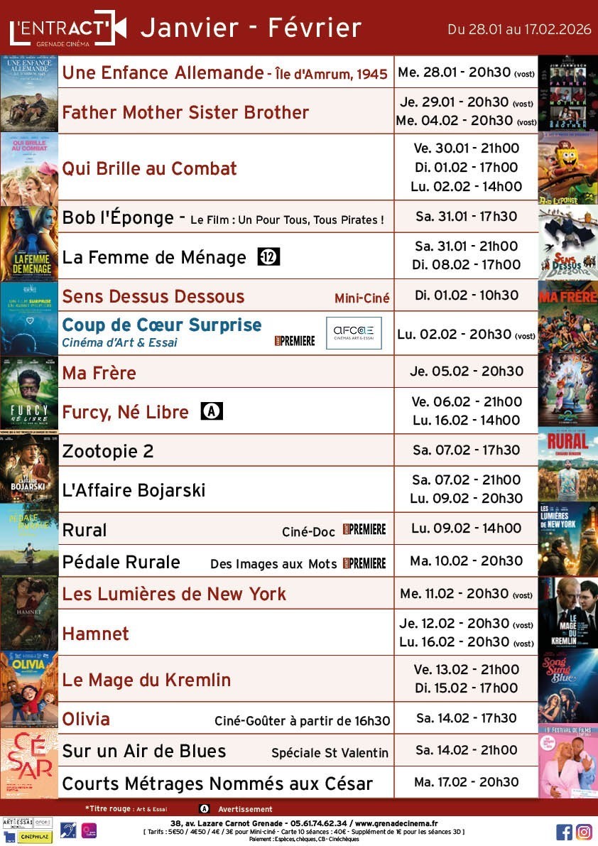 La Mairie de Villemur-sur-Tarn, en partenariat avec le réseau Cinéfol31, vous propose un nouveau rendez-vous cinéma gratuit pour le mois de février