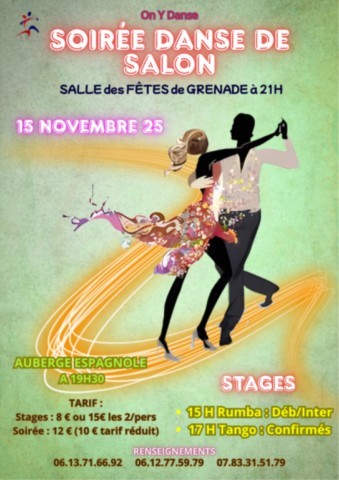L’association On y danse a le plaisir de vous inviter à sa première soirée danse de salon à la salle des fêtes de Grenade.