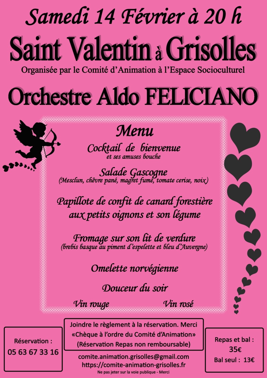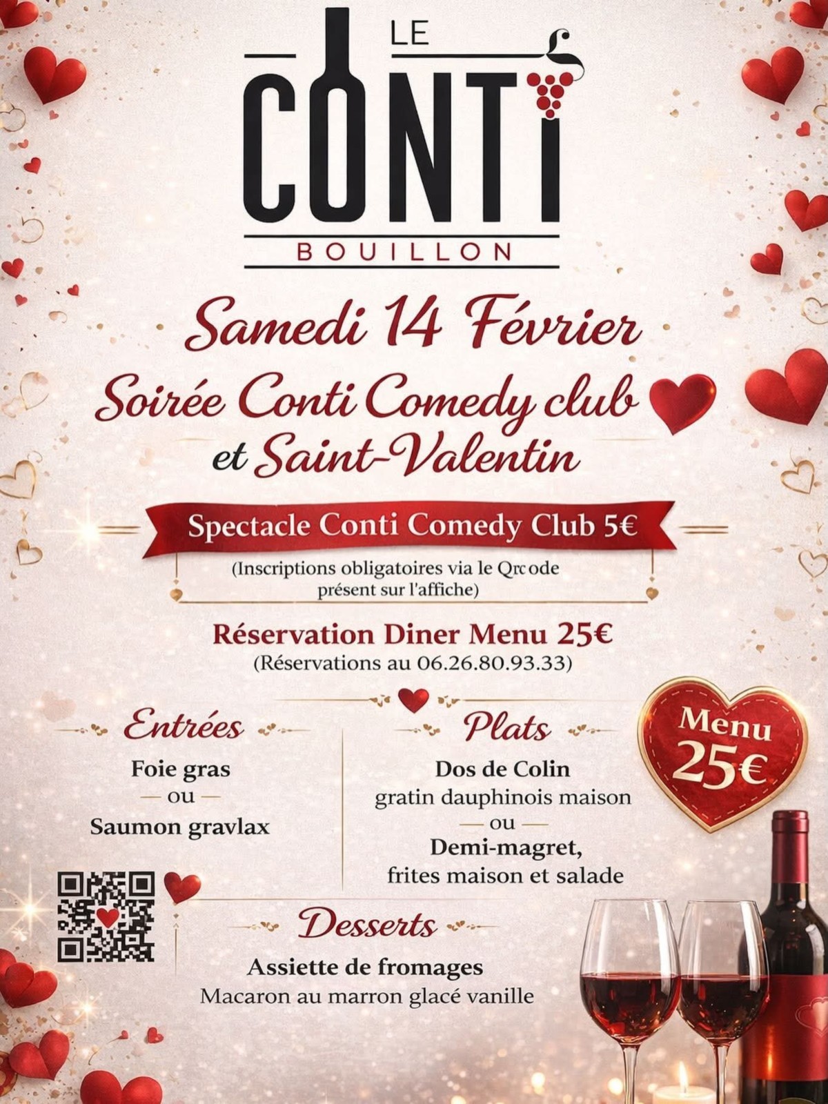 Les réservations pour le Diner spectacle Saint-Valentin sont fortement conseillées.