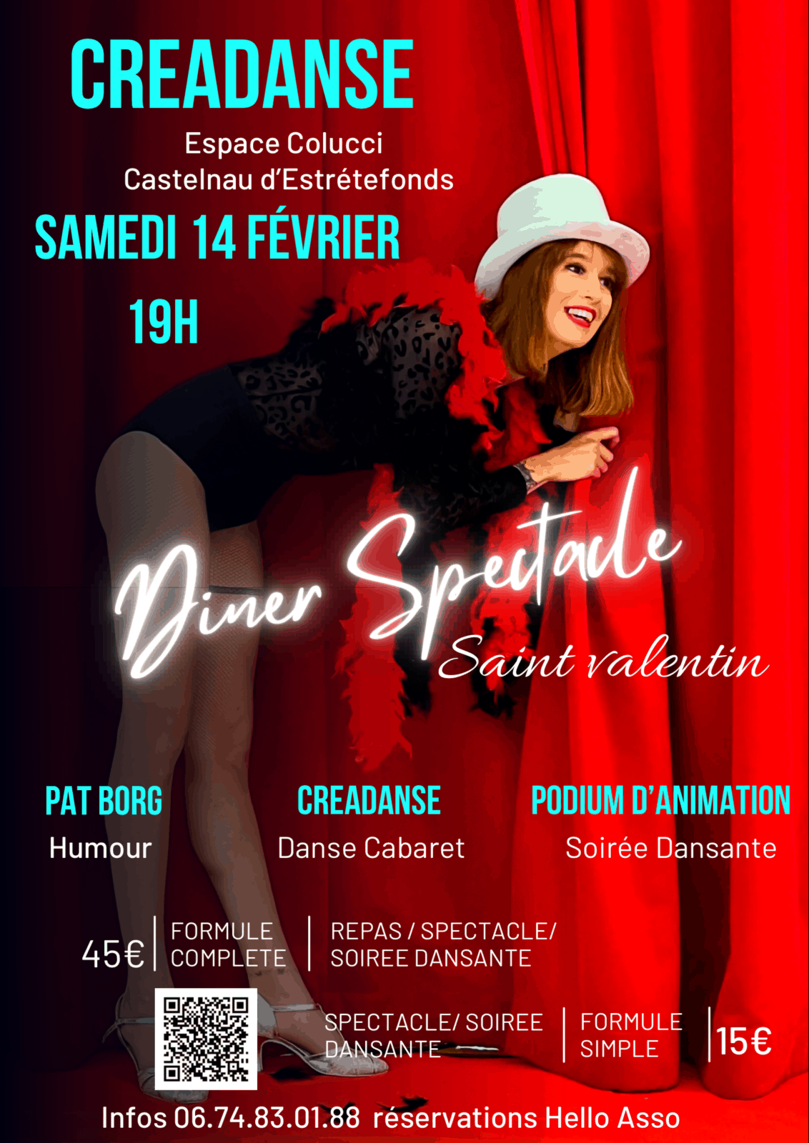 Réservation uniquement sur hello asso : https://www.helloasso.com/associations/creadansecastelnau/evenements/soiree-cabaret