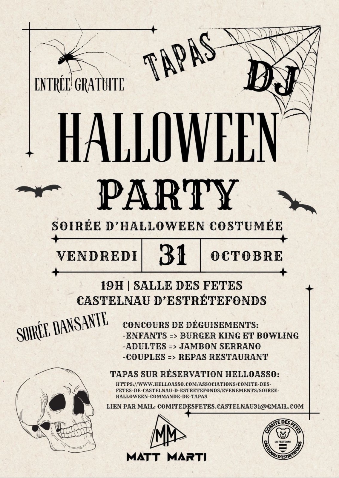 Réservez vos tapas sur Helloasso, sinon on envoie le croque-mitaine vous chercher. https://www.helloasso.com/.../soiree-halloween-commande