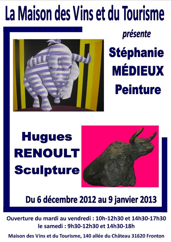 L'année recommence avec une exposition fort intéressante de deux artistes résidant à Fronton qui présentent leurs œuvres jusqu'au 25 février à la maison des vins et du tourisme.