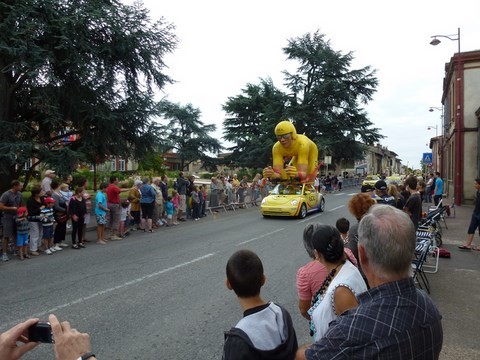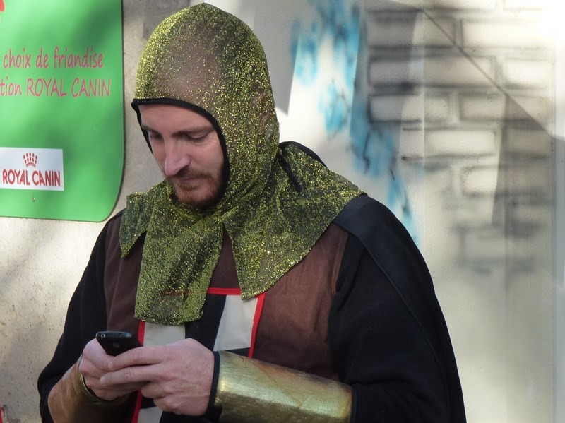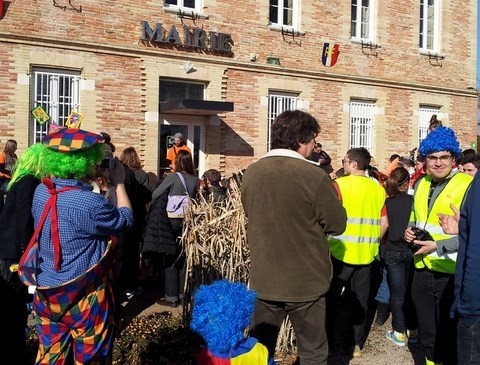 Attention ! Un paparazzi s'est glissé dans le carnaval : Nicolas Le Cheviller (sous sa jolie perruque bleue) qui est le sympathique chargé de la communication de Bouloc.