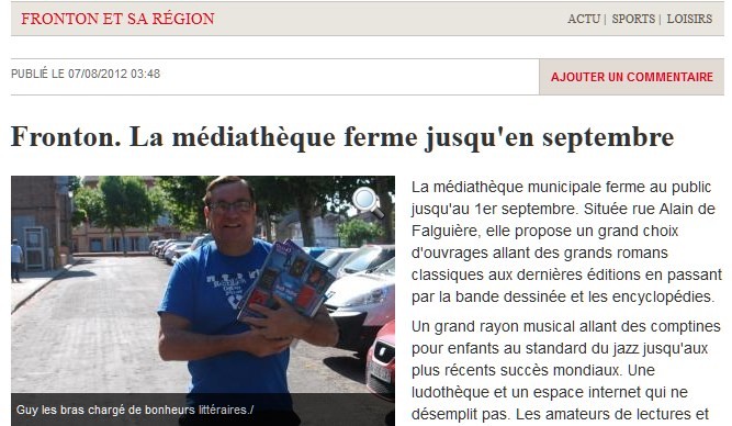 Que peut bien expliquer Marc Mouisset le correspondant de "la dépêche" à Marie Noëlle de la médiathéque ?