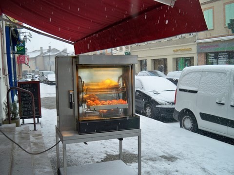 La rue Contrasty devient une cote infranchissable pour de nombreux véhicules. Dans la rue de la République, les seuls à ne pas avoir froid sont les poulet de la rôtissoire de la boucherie Moréno. Le blizzard souffle en rafale sur le 8 à huit et sur les "Délices du jardin".