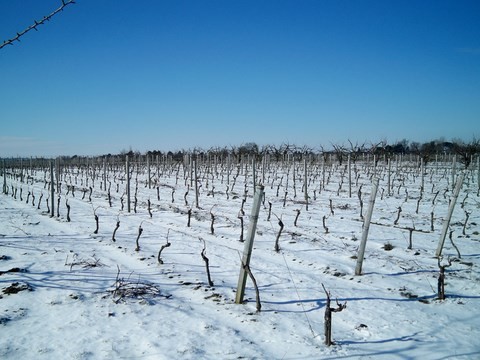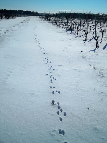 Gros changement aujourd'hui, si la neige est toujours présente, cet après midi le soleil rayonne afin de bien montrer que le patron c'est bien lui..!! Direction les vignes et les bois, derrière les traces de Jeannot lapin pour une petite balade d'oxygénation.