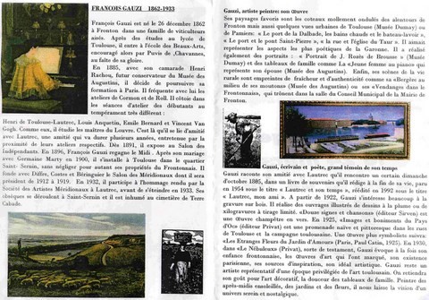 François GAUZI fut également écrivain, ami de Toulouse Lautrec, il lui consacrera un livre de souvenirs. Cette exposition a pu être organisée grâce au prêt de tableaux par des particuliers et par le musée des Augustins et le musée du vieux Toulouse. Elle sera visible jusqu'au 3 avril, n'hésitez pas à la découvrir