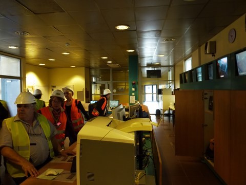 Avant toute chose, il faut s'équiper, casque et gilet obligatoire. Le hall de déchargement et la salle de commande d'où toute l'usine est dirigée.
