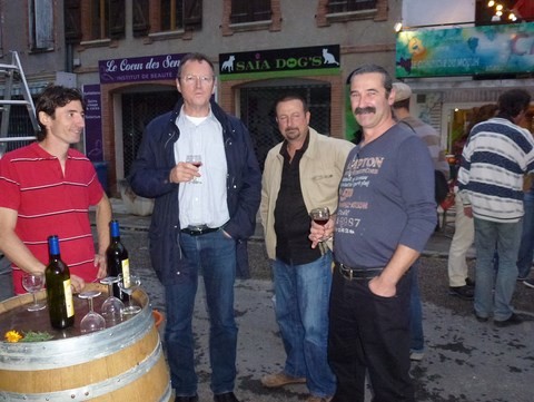 Les vins* étaient fameux et la soirée festive, nous avons dégusté en exclusivité mondiale (il ne faut pas avoir peur des mots) de la saucisse et du pain aromatisée à la négrette, la saucisse produite par le boucher Francis Moréno et le pain fabriqué par la boulangerie Au Palais des Douceurs. Ces deux commerçants innovants sont de Fronton