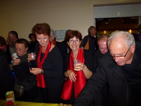 Après un final où toutes les chorales regroupées firent chanter l'assemblée, nous avons clôturé cet agréable après midi par le pot de l'amitié qui nous a permis de faire plus ample connaissance.