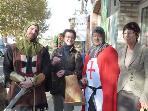 Nos vainqueurs furent magnanimes avec la population, ils ordonnèrent la mise en perce de nombreux tonneaux afin que moultes libations se fassent. C'est donc autour des fûts que dames, nobles et manants se rassemblèrent pour taster le divin breuvage célébrant la paix revenue.