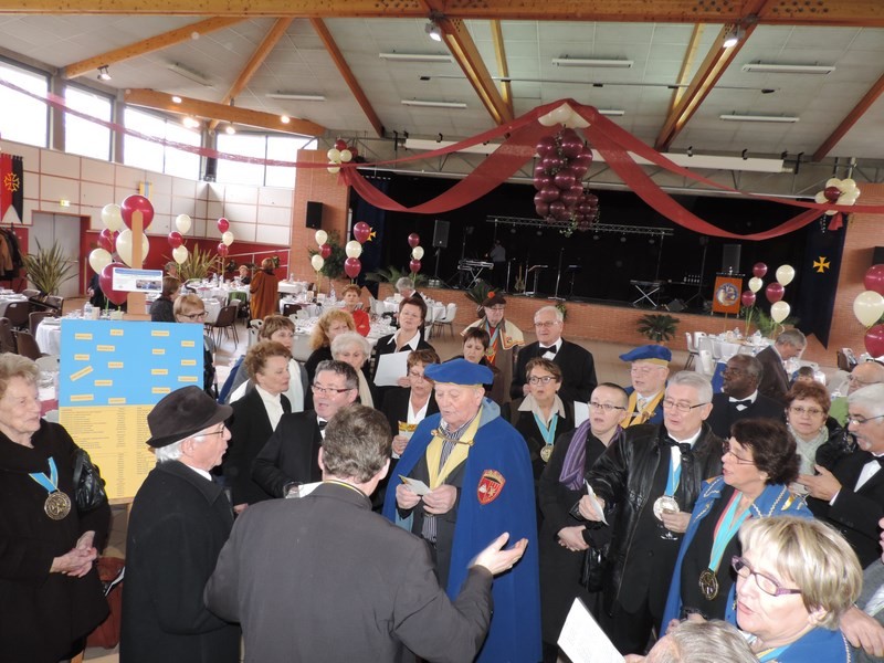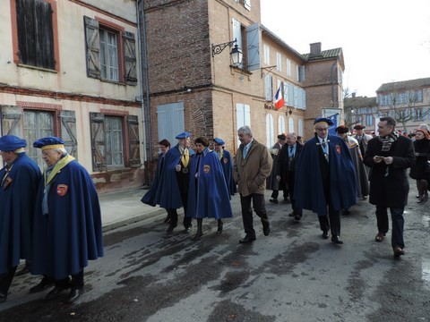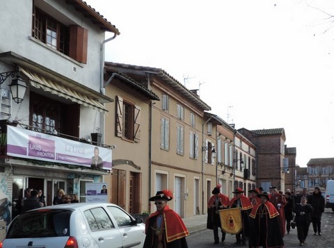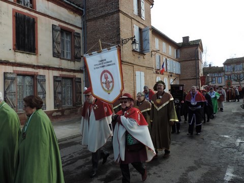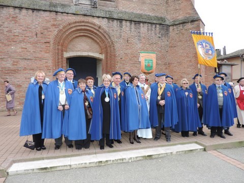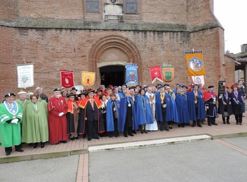 Ce matin notre village subit une invasion pacifique. Convergent vers l'église, en habits colorés de nombreuses confréries précédées de leurs bannières, sont venues assister à la messe de la St Vincent le patron des vignerons. Elles répondaient à l'appel du grand maître de la "Commanderie des Maîtres vignerons" Maurice Rougevin-Baville. Après la messe chantée par la chorale Castel Cantorum dirigée par Frédéric terrien et la photo de famille, direction l'Espace Gérard Philipe où l'apéritif attendait les participants.Ce pot de l'amitié fut bien évidemment agrémenté à nouveau par la chorale Castel Cantorum sous l'oeil de son président Pierre Bessière qui interpréta LA FROUNTOUNENCO, chanson à la gloire de Fronton qui fut reprise par tout le public.