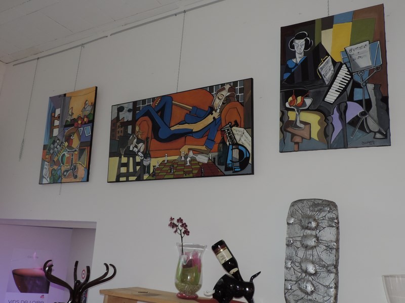 Associer l'Art et le vin, voici le pari que les propriétaire de la Cave Mouisset Annick et Marc sont en passe de réussir.Régulièrement ils nous proposent de découvrir les œuvres de photographes, peintres ou sculpteurs qui viennent embellir la cave déjà fort jolie au demeurant. Ce soir c'est Michel Gallot peintre résidant Le Born