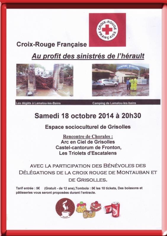 Organisé par la Croix Rouge de Grisolles et de Montauban et sur l'invitation de Line Rousse la présidente de la chorale Arc en Ciel.Ce concert réunissait également : Castelcantorum notre chorale frontonnaise ainsi que Les Triolets d'Escatalens