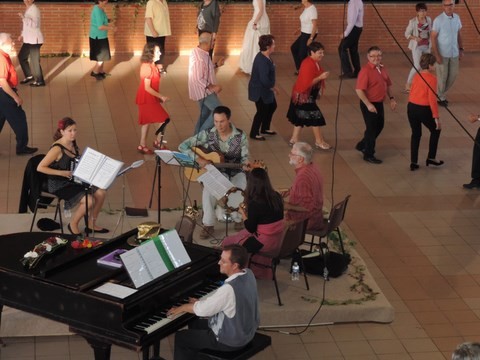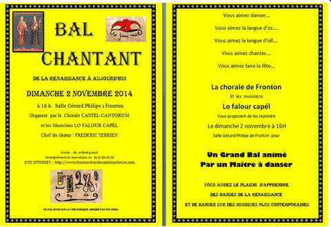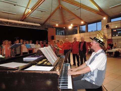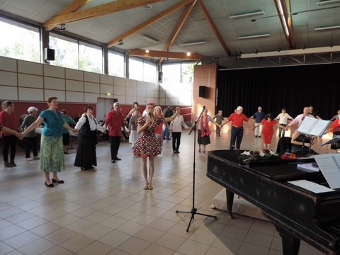 Quand cette association fait quelque chose, elle ne le fait pas à moitié. En effet elle nous à offert pour cette fin de semaine, deux sympathiques animations. Tout d'abord samedi ce fut le loto où Virginie et Alicia furent les grandes gagnantes, en effet par trois fois le mot "Quine" résonna à cette table.Puis le lendemain place à un bal chantant avec l'orchestre Lou Falour Capèl dirigé par Frédéric Terrien et animé par un Maître à danser.... Cette charmante jeune fille dynamique réussi l'exploit de faire se lever la presque totalité de l'auditoire afin d'exécuter des danses de la renaissance. En plus des musiciens, la chorale participait à l'animation musicale sur laquelle les danseurs virevoltaient, des morceaux contemporains s'alternaient aux rythmes anciens. Comme la veille tous ceux qui n'avaient pas hésiter à venir malgré le beau soleil se sont bien amusés et cerise sur le gâteau, la soirée s'est terminée autour d'un magnifique et copieux buffet réalisé par les choristes.