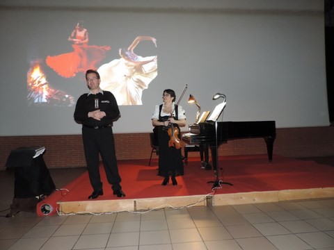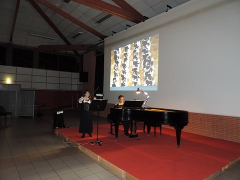 A l'occasion de ce concert de soutien à "Musique en Vignes", organisé par Jacqueline Coquet, le Duo Lesage nous a entraîné à travers l'Europe. Céline et Eric associent une vidéo-projection de paysages, de portraits et de tableaux pour le plaisir visuel des spectateurs. Dommage que le mauvais temps ait découragé le public.