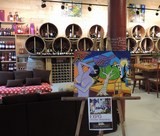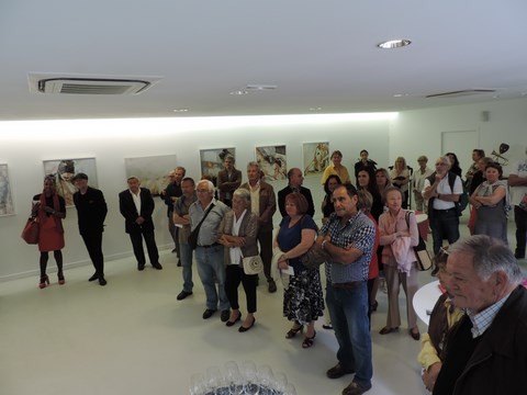 Il y a foule pour ce vernissage intitulé " Les villes de rêve 2014" et le public peut flaner dans la cave en découvrant les superbes tableaux colorés de l'artiste.