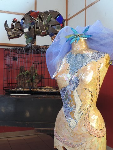 Toute jeune, Maryse Cros, artiste toulousaine, a baigné dans l'amour du beau et dans une constante créativité: sa grand-mère était une couturière hors pair et très avant-gardiste. Elle a donc pris de cette dernière un vif esprit créatif . Autodidacte, elle a commencé son travail chez elle. En effet, depuis plusieurs années, Maryse Cros habille des mannequins de couturière pour leur donner vie en utilisant des matériaux improbables: tissus, végétaux, pierres, verres, mosaïques, peaux, perles...