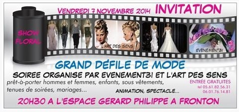 Il aurait fallu pousser les murs à l'Espace Gérard Philipe tant ce défilé organisé par Valérie et Daniel était attendu. Plus une chaise de libre, de nombreux spectateurs debout pour ce spectacle qui nous entraîna sous des rythmes endiablés au bout de la nuit. Nous avons découvert la mode avec des tenues pour tous les ages. De véritables œuvres d'art avec des robes réalisées avec des fleurs (le talent de Daniel qui est aussi fleuriste) et bien sur un final grandiose avec de magnifiques robes de mariées plus belles les unes que les autres.