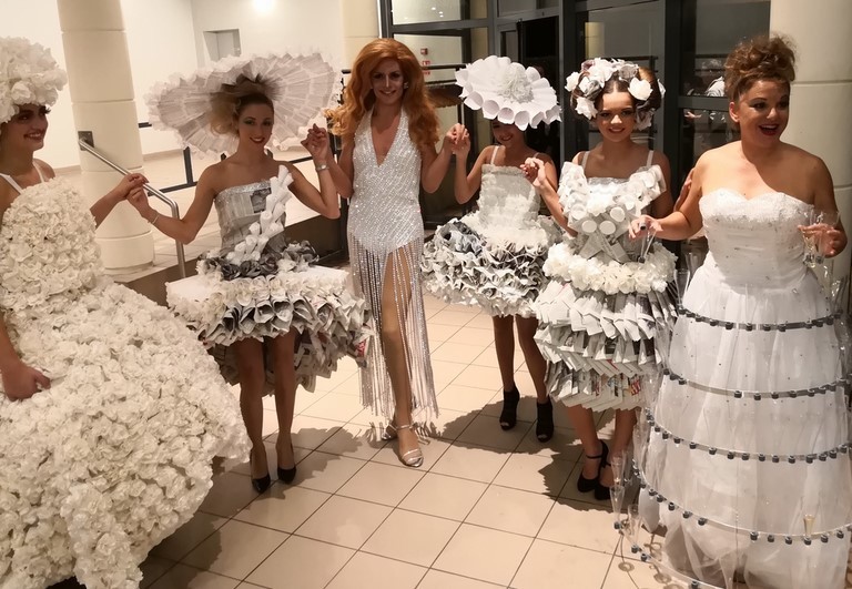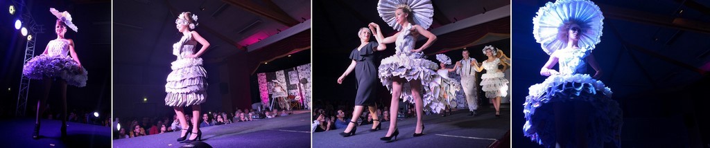 Nous avons en plus, eu la chance de pouvoir entendre et voir évoluer sur la scène, Johnny Halliday, Sylvie Vartan, Mylène Farmer et Dalida entre chaque défilé. Tous ces artistes étaient interprétés avec brio par Gary Show. Le public avait répondu présent car plus une place n’était disponible dans la salle Gérard Philipe récemment rénovée. Daniel Dall’Armi comme chaque année nous avait réservé une surprise : des robes confectionnées avec du papier et des vieux journaux. L’une d’elle a été élaborée avec 1800 fleurs en papier. Bravo à Nathalie qui travaille avec Daniel pour cet exploit.