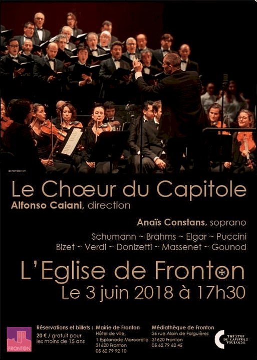 Encore un grand moment musical grâce à ce concert donné à l’église de Fronton par les Chœurs du Capitole dirigés par Alfonso Caiani, renforcés à cette occasion par notre talentueuse voisine Anaïs Constans. Le maire de Toulouse Jean-Luc Moudenc entouré de nombreuses personnalités nous a fait l’honneur de participer à ce grand moment lyrique.