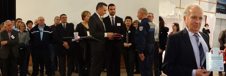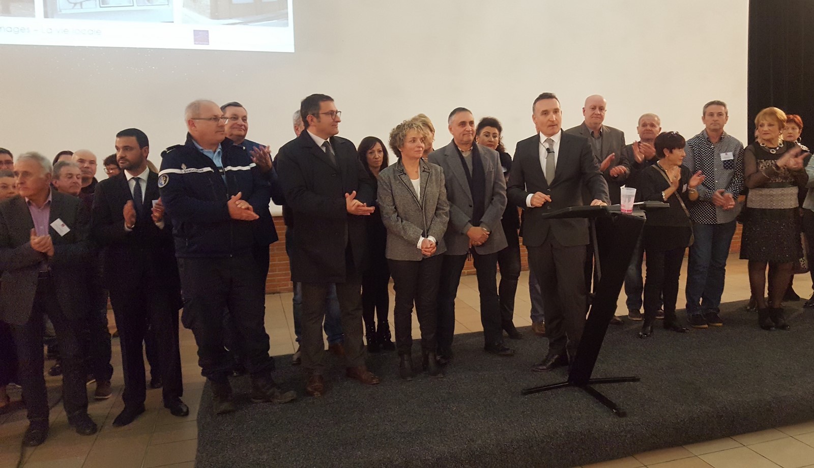 Beaucoup de frontonnais s’étaient déplacés pour cette cérémonie des vœux à l’espace Gérard Philipe. A cette occasion le maire s’est présenté entouré de son conseil et du personnel communal. A cette occasion Patrick Bernigaud de la police municipalea reçu la médaille de la sécurité intérieure, échelon bronze pour sa conduite extrêmement courageuse lors d’une intervention. Quant à Robert Bard le président du « Goujon frontonnais » il a reçu la plaque d’ambassadeur du frontonnais pour l’ensemble de son travail à la tête de cette association dynamique. Puis le public s’est retrouvé autour d’un copieux buffet.