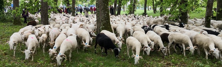 Fronton : invasion pacifique de moutons à l'occasion de la transhumance.