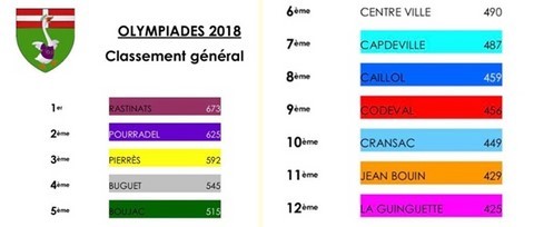 12 quartiers se sont affrontés et 415 concurrents ont croisé le fer dans différentes épreuves afin d'obtenir pour une année le précieux trophée. Cette année les Olympiades avaient un prestigieux parrain en la personne de Trevor Brennan. c'est cette année le quartier Rastinats (Rastel + Scandinats) qui remporta la palme et La Ginguette la cuillère de bois le tout dans la bonne humeur.