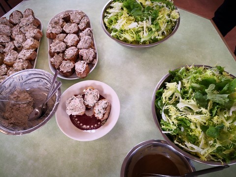 . Comme le précédent il était animé par Isabelle Bédex de NUTRImania. Au menu de ce jour : rillettes de sardine sur pain grillé, puis une tarte aux endives, lardons et bleu d’Auvergne et en désert, pruneaux aux épices et agrumes accompagnés d’une écrasée de ricotta.