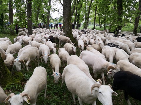 Plus de 250 moutons accompagnés de 150 personnes ont relié la maison des vins après leur départ de Bouloc. Sous la conduite de Moïse le berger tout ce petit monde s'est retrouvé une fois arrivé autour d'un solide en-cas, l'herbe grasse du château pour les ovins et un solide buffet arrosé de Fronton pour les humains.