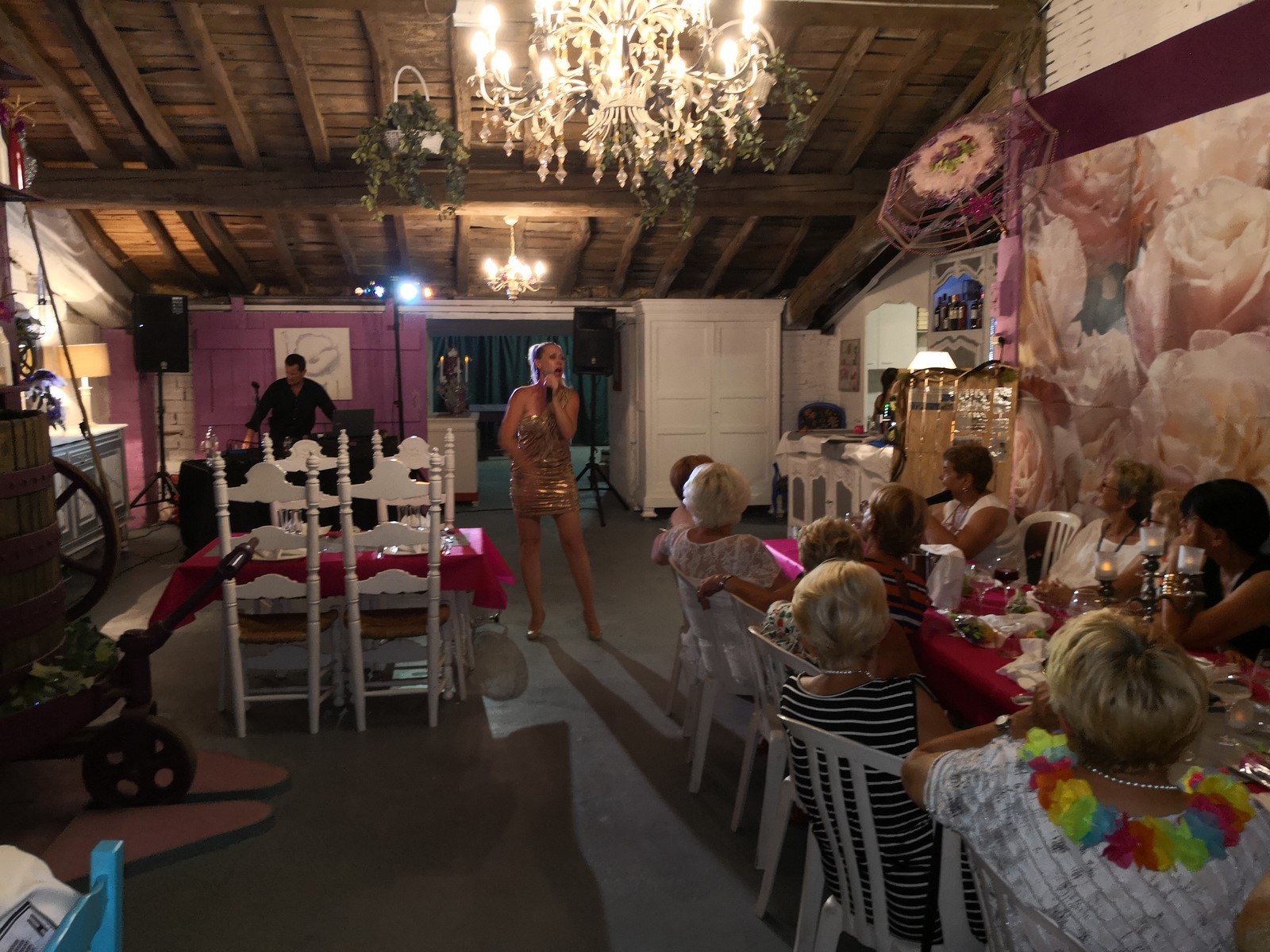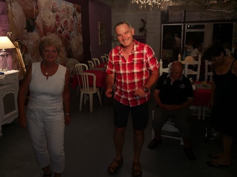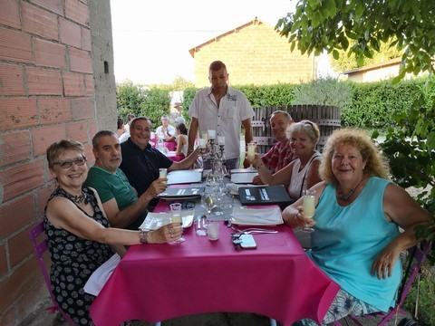 Audrey Aguirre la talentueuse restauratrice d’Ava Traiteur avait déplacé ses fourneaux chez les garçons chemin de Jouaninels. Dans ce cadre bien sympathique Loetitia et Daniel qui animaient cette soirée ont enchanté la salle et fait reprendre en chœur par les convives les morceaux qu’ils interprétaient. Daniel et Manu les hôtes sont passés en fin de repas parmi les invités pour leur offrir une rose qui avait la particularité d’avoir les pétales de diverses couleurs et leur faire déguster une prune à l’eau de vie élaborée par Berthe. Le repas quant à lui fut délicieux et remporta un franc succès, il suffit de regarder les photos qui suivent pour comprendre pourquoi. Bravo Audrey pour cet agréable moment. Prochain rendez vous : Orgueil les 5 et 6 octobre au château Peyrot.
