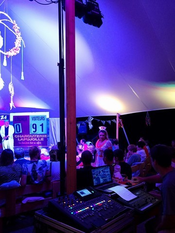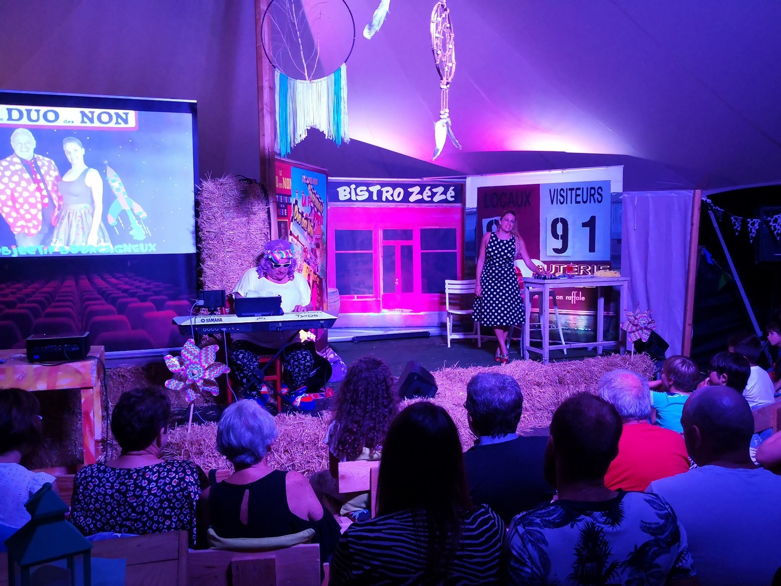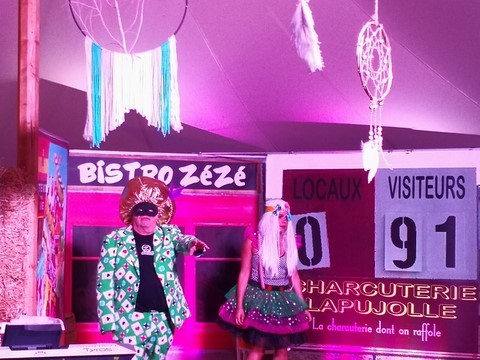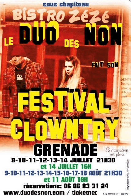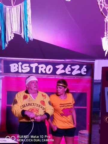 Delphine et Jean-Jacques nos deux larrons du fameux Duo des Non, présentent jusqu’au 18 août sous chapiteau (étanche, nous avons pu le vérifier) leur dernier spectacle, hilarant comme d’habitude. Ce soir ils avaient bien fait les choses en conviant au beau milieu de la représentation un gigantesque orage avec en prime de superbes éclairs (non ce n’était pas des effets spéciaux créés par le machiniste). Cela n’a pas arrêté nos deux compères qui ont réalisé leur numéro comme si rien ne se passait pour la grande joie du public venu nombreux. En plus du spectacle qui commence à 21h30, en arrivant à partir de 19h30 vous pouvez déguster une respectable assiette de charcuteries et de fromages ainsi que des délicieux tiramisus préparés par Delphine. Ce spectacle qui n’est vraiment que du bonheur vous est proposé tous les jours jusqu’au 18 et je vous engage à courir réserver vos places sans tarder (Cliquez sur l’affiche) car c’est souvent complet.