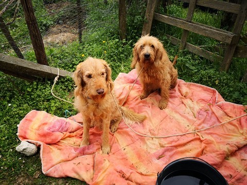 Grenade (pardon Bourcagneux). Le Duo des Non en représentation dans leur jardin