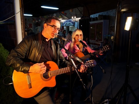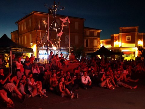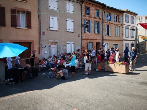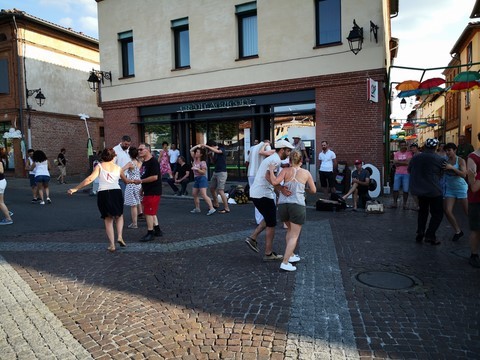 C’est maintenant devenu habituel au mois de juin, Daniel et Emmanuel organisent un marché nocturne. Et cet événement prend chaque année de plus en plus d’ampleur, il suffit pour s’en rendre compte d’arriver vers 21h et d’avoir de grandes difficultés afin trouver une place de stationnement. Pourtant nos deux compères font bien les choses en proposant deux grands parking ! Une fois dans la place nous avons eu l’embarras du choix afin de composer notre repas : huitres, cochon de lait cuit à la broche, charcuteries de toutes sortes, couscous…etc. (je ne peux pas tout nommer). Pour les desserts il en fut de même : pâtisseries, glaces à la plancha… Avec bien entendu du vin de Fronton (à consommer avec modération) pour faire passer toutes ces douceurs. Des artisans proposaient également leurs créations, excellente idée en cette veille de fête des pères. L’ambiance musicale était assurée par le Duo Escarmouche, un couple dynamique et talentueux qui entraina le nombreux public dans un répertoire complet où les meilleures chansons françaises étaient présentes.