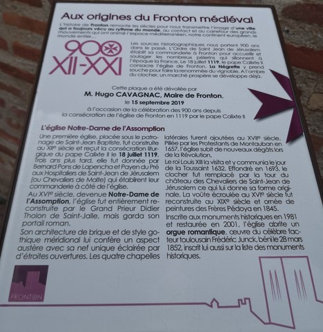 Les Frontonnais se sont réunis sur le parvis de l’église pour célébrer l’histoire multiséculaire de leur ville. Coup d’envoi des festivités : le dévoilement de la plaque commémorative des 900 ans depuis la consécration de l’édifice par le pape Calixe II, en 1119.