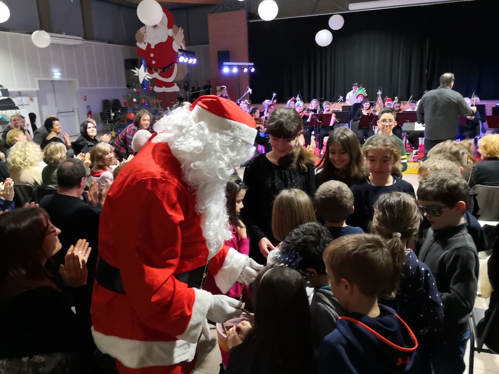 Les jeunes musiciens de l’école de musique du frontonnais ont assuré la première partie de la soirée, ils étaient dirigés par Christelle Gautherin. Un Grinch vert farceur a fait une apparition, mais le Père Noël l’a vite chassé, et les enfants ont pu avoir leurs chocolats et bonbons.