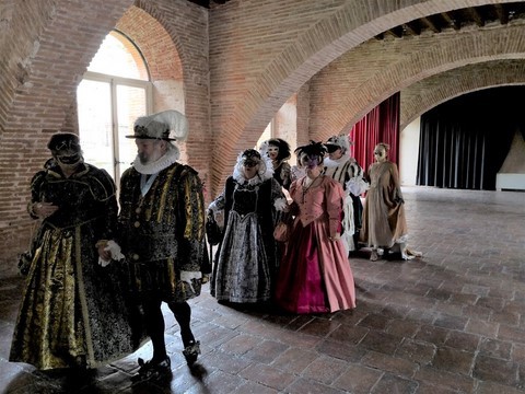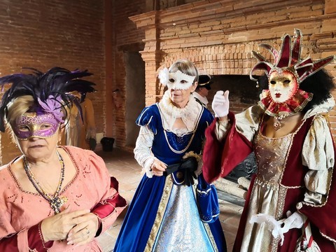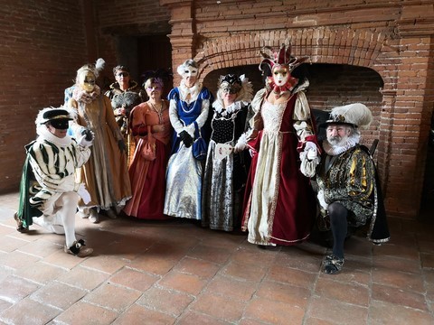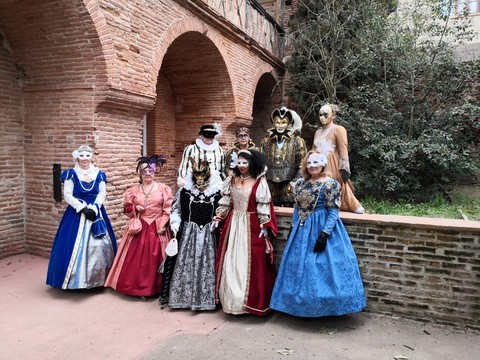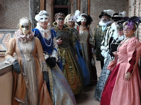 C’est ainsi que des membres de l’association « Au Fil des Temps, Histoire et Légendes » ont décidé de répondre au concours, lancé par la commune de Castelnau en partenariat avec les APE, de déguisement virtuel pour carnaval. L’occasion était trop bonne et le thème « Bal masqué » leur a permis d’entrer dans le monde du carnaval vénitien en costume Renaissance.