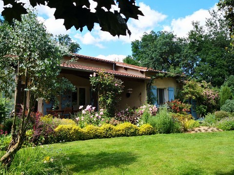 Bernadette et Jacques Bertrand ouvraient les portes de leur havre de verdure de 6000 m2, un magnifique jardin d'inspiration anglaise, bordé par le ruisseau La Brive et son pont de briques. Des constructions en bois personnalisent les lieux.