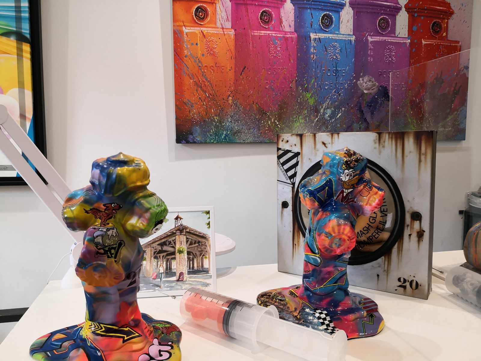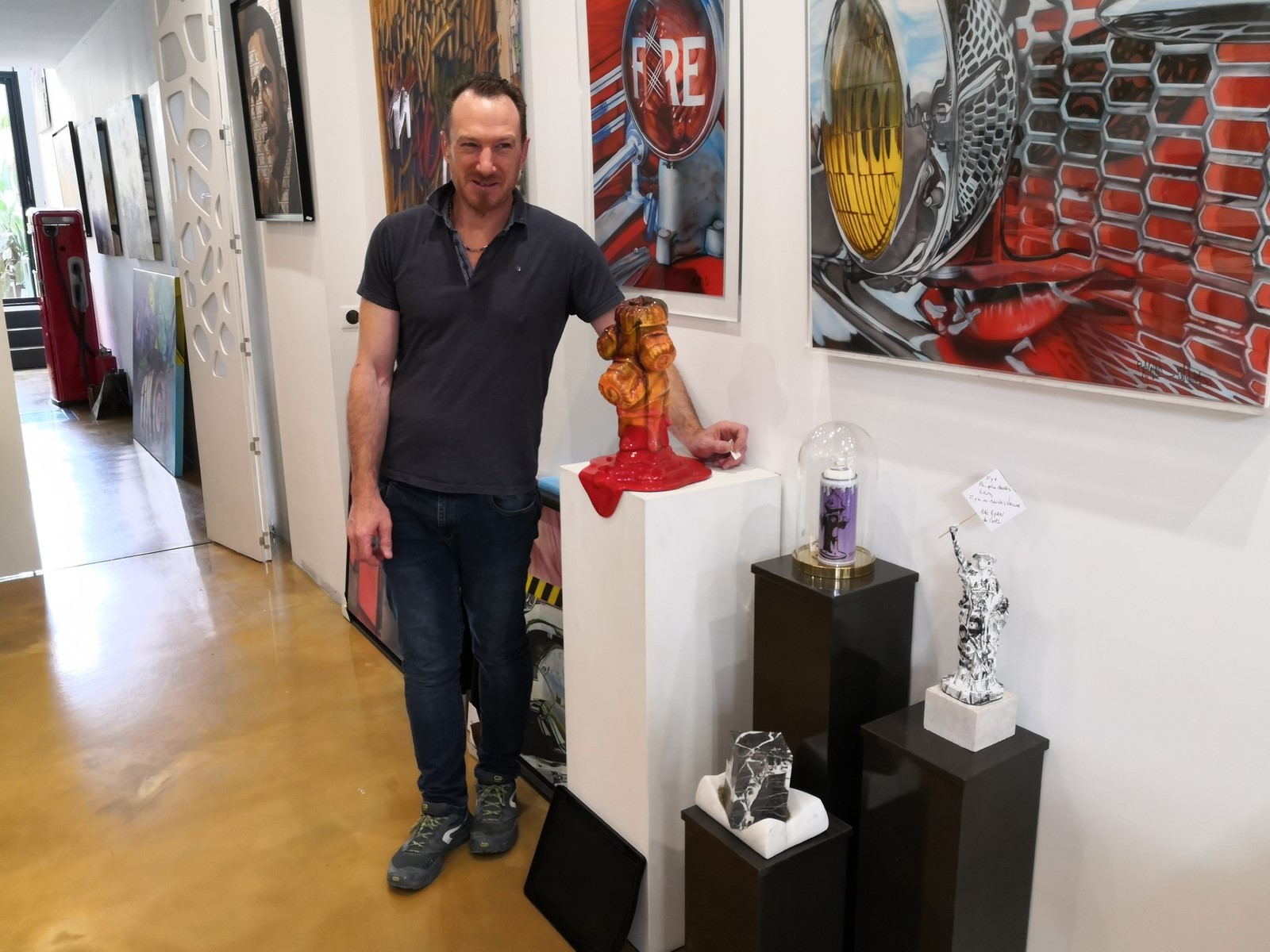 Profitant de mon passage au marché du samedi sous la halle de Grenade, j'ai rendu visite à Williams Raynaud. Son atelier, salle de présentation en bordure de la halle expose ses principales œuvres. Marqué par la découverte d’une technique l’aérographe (Airbrush), qui devient des 1998 son principal centre d’intérêt son style est résolument hyperréaliste. Il assure également des formations afin d'enseigner son art. A noter également ses sculptures de bornes d'incendie de toutes couleurs. N'hésitez à pousser la porte de son atelier afin de découvrir son extraordinaire univers.