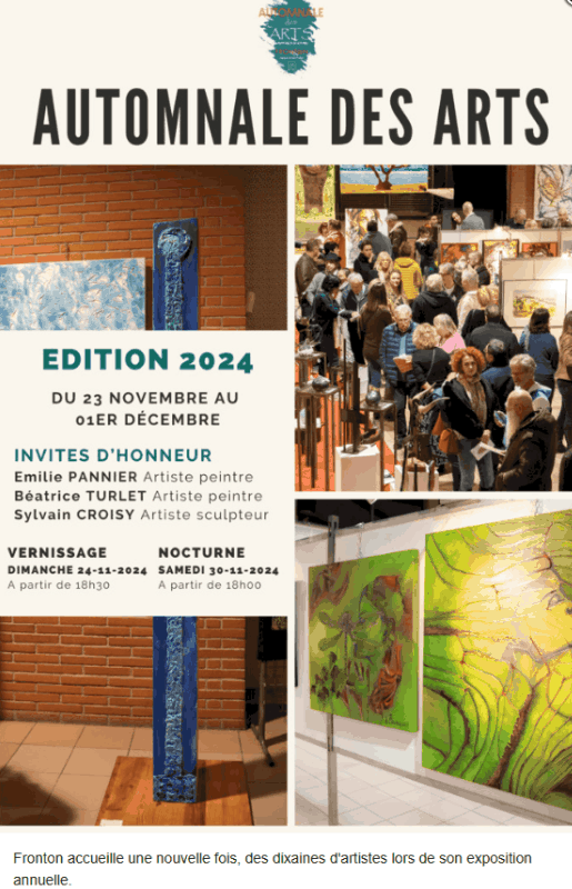 Trois artistes de marque honorent cette édition comme invités d’honneur : les peintres Emilie Pannier et Béatrice Turlet et le sculpteur frontonnais Sylvain Croisy.