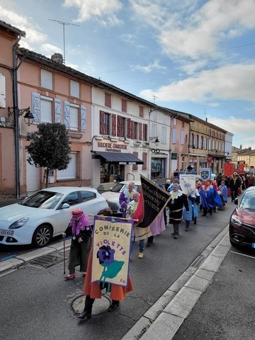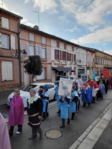 Le défilé dans les rues et le marché de Fronton. Hugo Cavagnac et le grand maitre François Daubert.