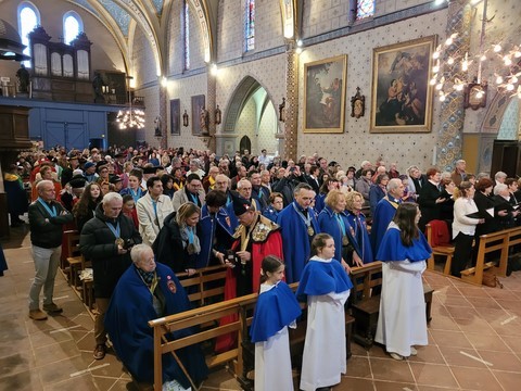 Après avoir défilé dans les rues de la ville l'imposant cortège s'est rendu à l'église afin d'assister à la grand messe où à la fin de celle ci sept nouveaux membres allaient être intronisés.