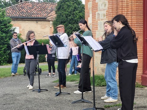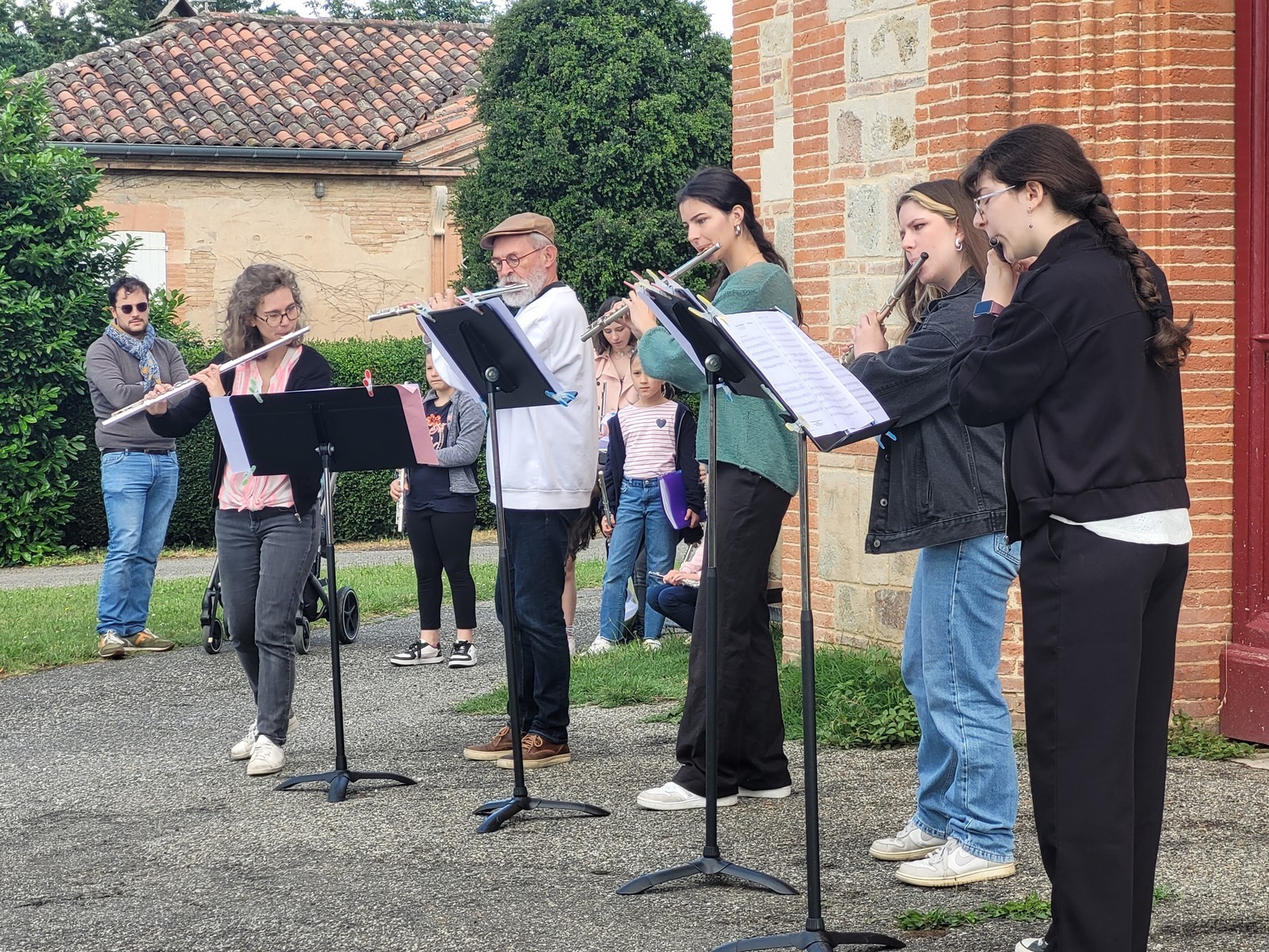 A l’étape suivante la classe de flute sous la direction de Maêlys Imbaud nous fit réviser nos gammes avec un questionnaire sur les morceaux musicaux joués. Pour finir l’école de musique