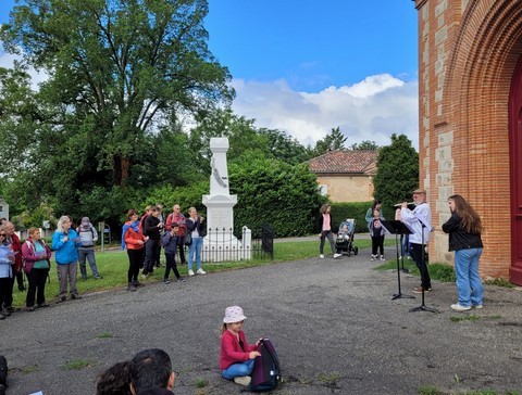 Valentine Secrestat de l’Office de Tourisme de Fronton organisait une balade Musiques en rando qui cette fois ci se passait à Villeneuve lès Bouloc. Une cinquantaine de participants avaient répondu présent dont le président de la CCF