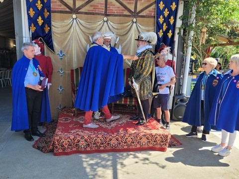 Dimanche après-midi l’arrivée du Roi sur son cheval...blanc afin de se faire introniser par le grand maître de la commanderie des maîtres vignerons du frontonnais,