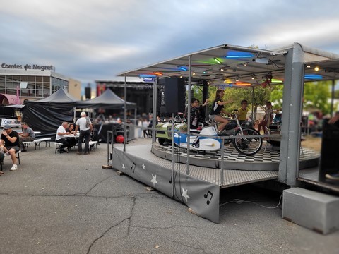 Toute l’équipe de la Canopée nous avait donné rendez vous devant la cave coopérative de Fronton où un gigantesque chapiteau était installé afin d’accueillir les nombreux artistes renommés