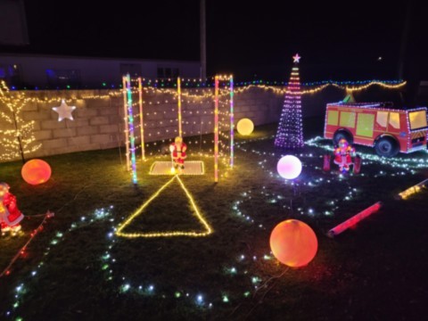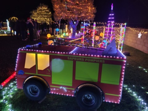 et guirlandes, 71225 leds et 4,25 km de fil lumière… En nouveauté cette année, il y a l’aire de lancer du marteau créé pour ma fille, et le camion de pompiers fait pour mon fils qui est