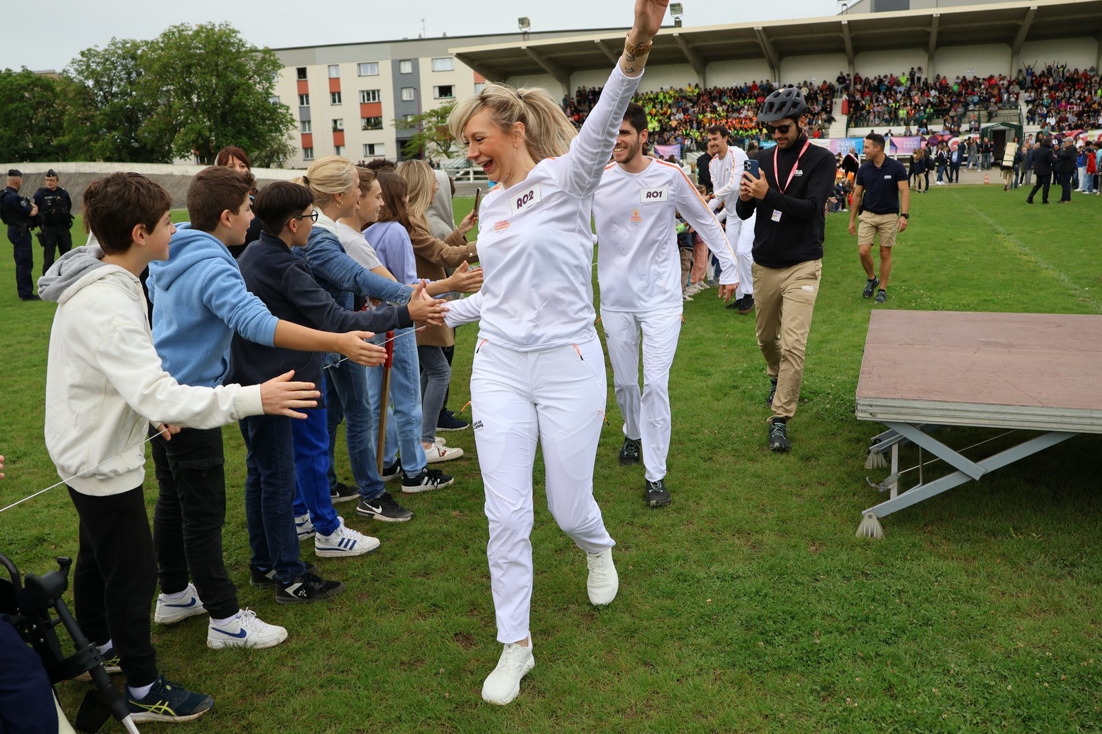 Rendez-vous place de la Mairie pour attendre en direct le convoi olympique et les athlètes qui le composent. C’est là que l’allumage de la Flamme a eu lieu et que le parcours débuta.