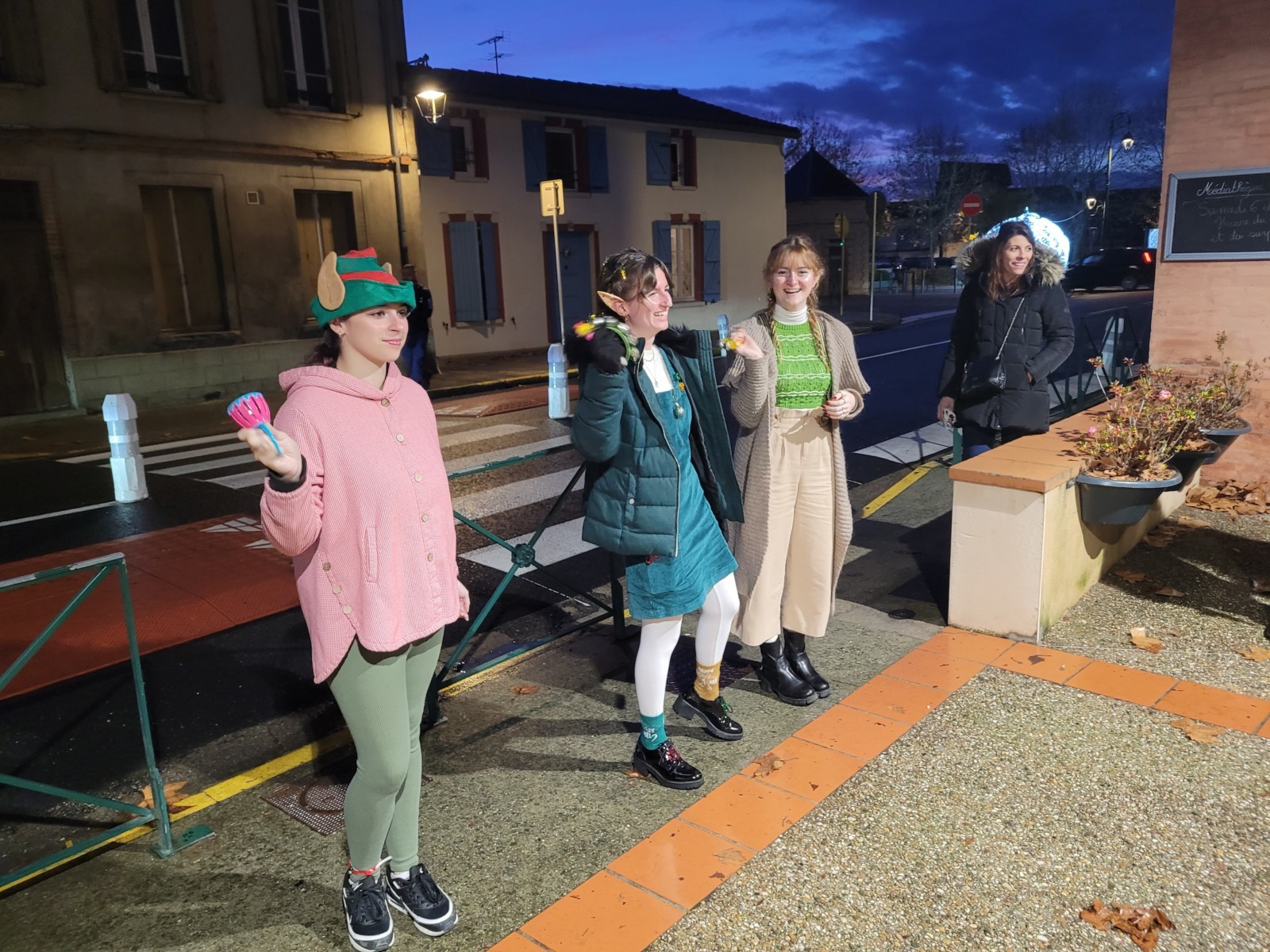 Il y avait deux petits lutins (ici avec Angélique Caliman) en promenade entre les stands.